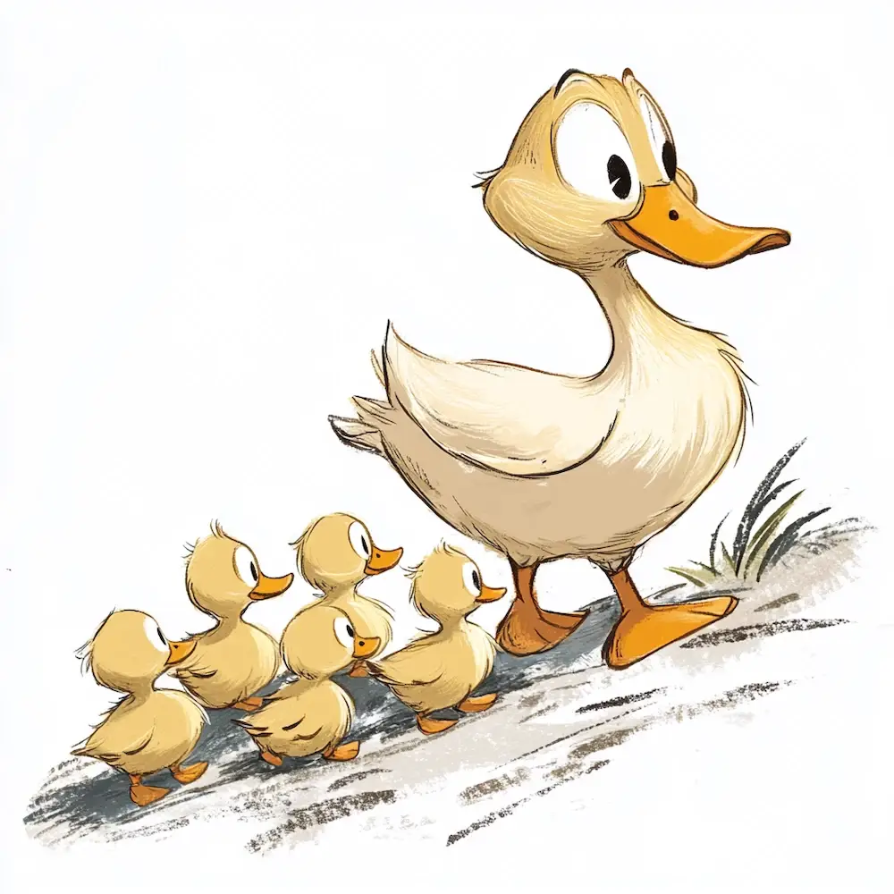 Five little ducks is a fun nursery rhyme teaching counting skills and family bonds.